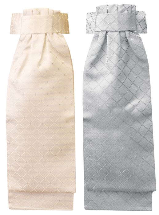 Deluxe Ready-Tied Stocks - Diamond Jacquard Ivory/Silver